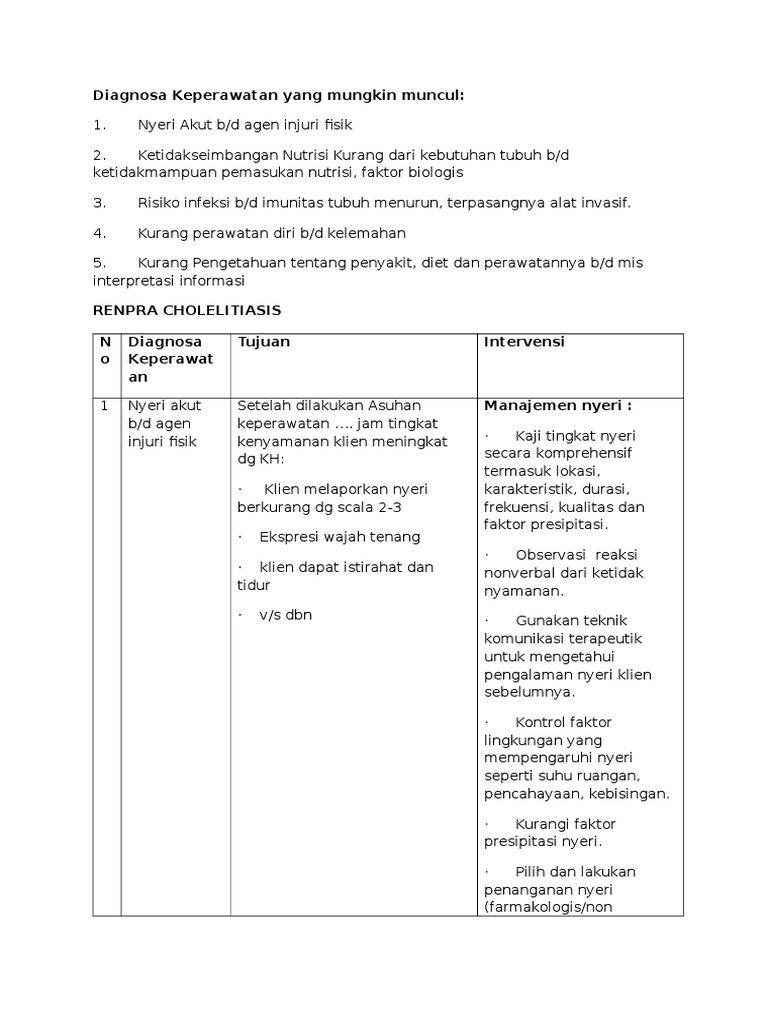 Diagnosa Keperawatan Yang Mungkin Muncul